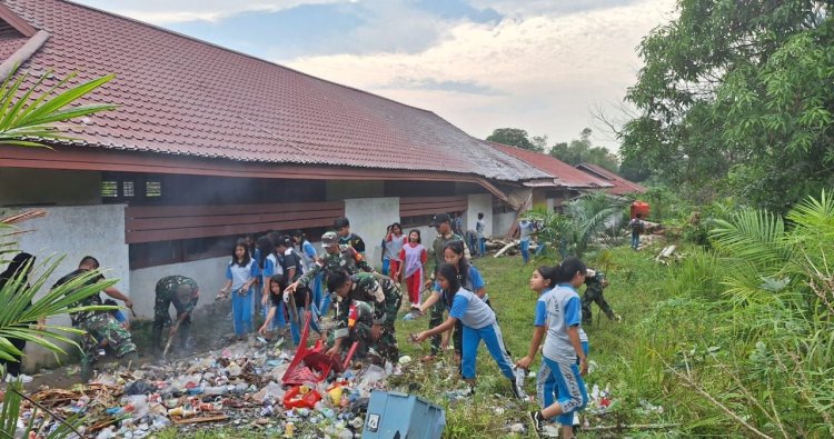Dalam kegiatan tersebut, para prajurit bersama para pelajar bekerja sama membersihkan area sekolah, mulai dari halaman, ruang kelas, hingga selokan di sekitar lingkungan sekolah.