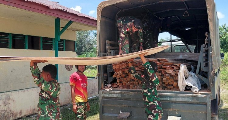 Nanga Badau, Kalimantan Barat - Dalam rangka mendukung kegiatan teritorial di wilayah perbatasan nasional, Satgas Pamtas Yonkav 3/AC melaksanakan renovasi SD Negeri 26 Aboi yang sebelumnya berada dalam kondisi tidak layak huni.